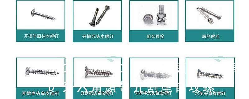 1、Flat:平頭 (鎖入后,頂部與工作件齊平)2、Oval:色拉頭、O頭、半沉頭 3、Round:圓頭 4、Pan:圓扁頭 5、Truss:大圓扁頭 6、Hex:六角頭 A-5:Finish Code/外觀處理。公制自攻螺絲 :于品名后方直接標(biāo)示 Tapp Hexagon flange drilling screw with tapping screw thread 六角法蘭面自鉆自攻螺釘 中文名稱 英文名稱 六角螺絲(栓) HEX HEAD CAP SCREWS(HEX BOLTS) 六角機械螺絲 HEX HEAD MACHINE BOLTS 六角木牙螺絲 HEX LAG BOLTS 四角螺絲 SQUARE